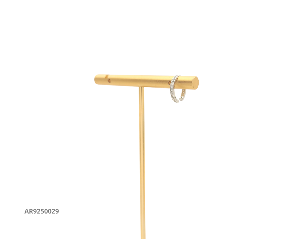Diseño minimalista y elegante en forma de aro fino, adornado con delicadas circonias blancas que añaden un toque de brillo sutil. Ideal para un look moderno y versátil.