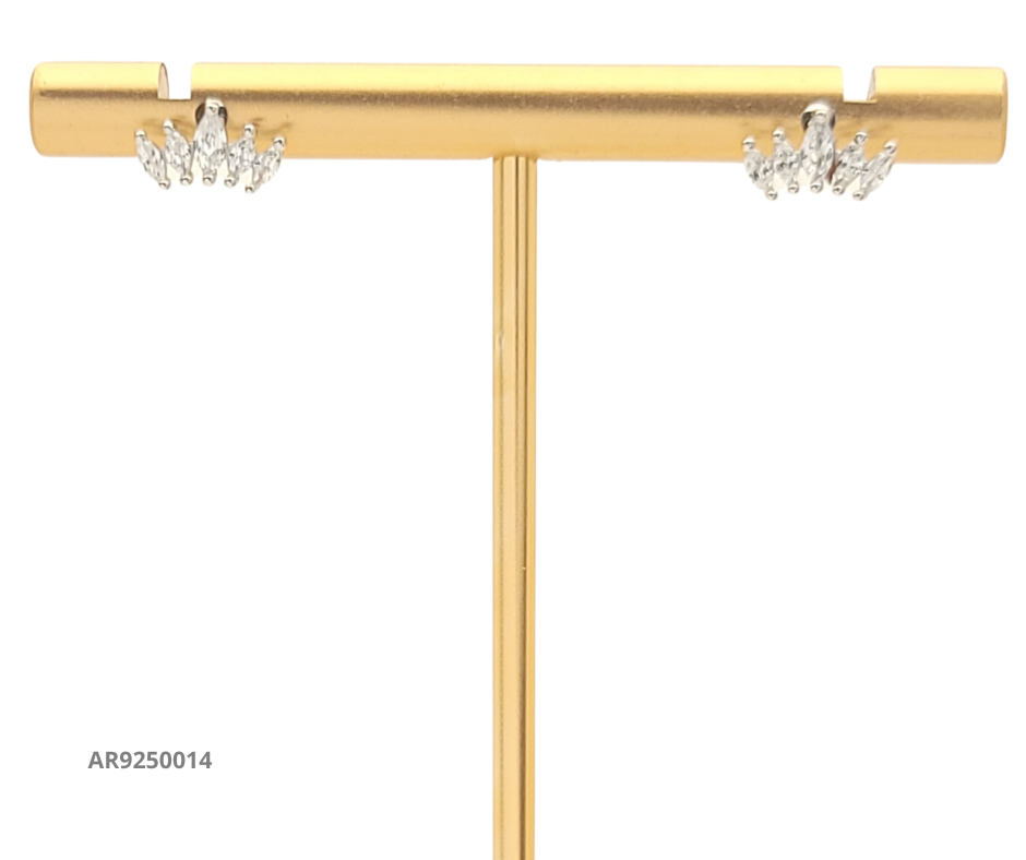 Sofisticados aretes en forma de corona, elaborados en plata 925 con zirconias blancas en corte marquise que aportan un brillo elegante y distinguido.