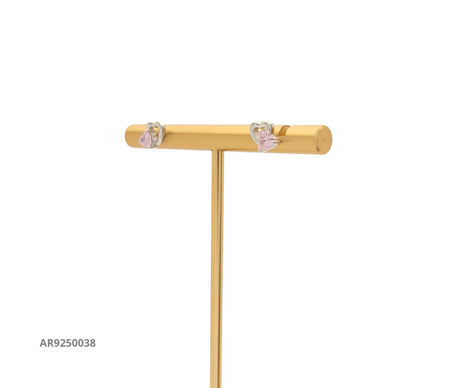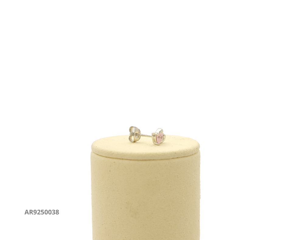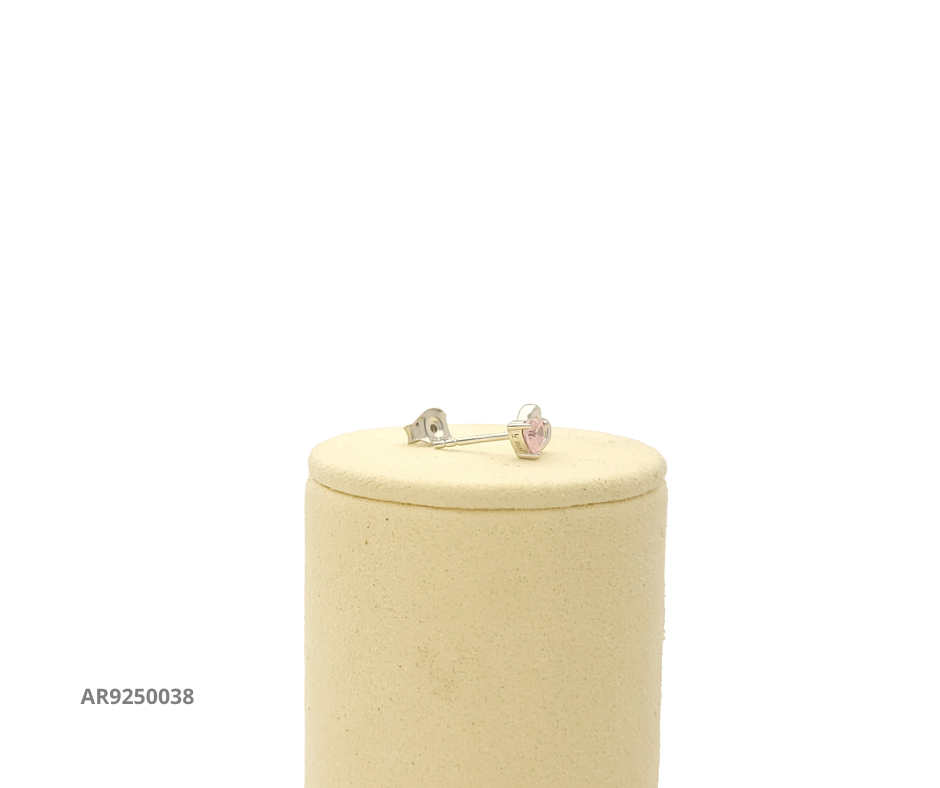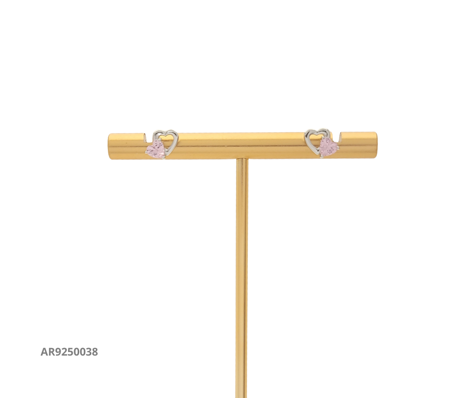 Aretes en plata 925 con diseño de corazón abierto y detalle central de circonia rosa en forma de corazón, un accesorio romántico y delicado para resaltar tu estilo.