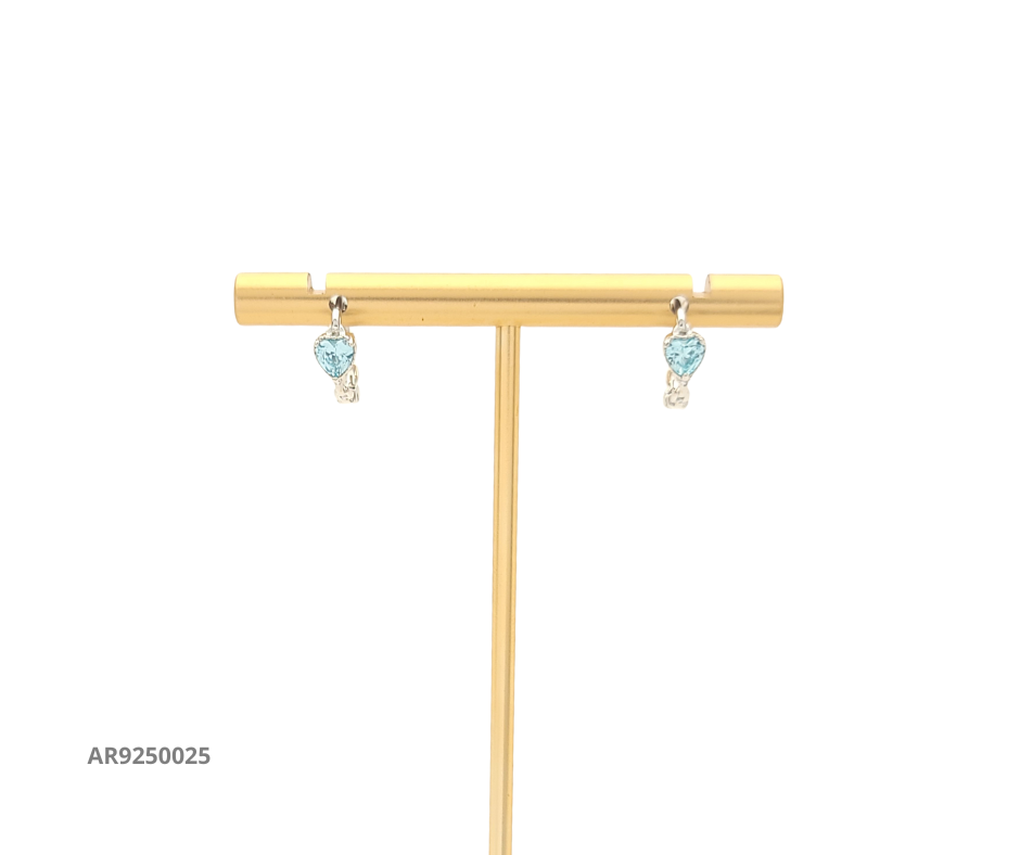 Encantadores aretes elaborados en plata 925 con diseño de aro texturizado y dije en forma de corazón con piedra azul, que aportan un estilo romántico y juvenil.