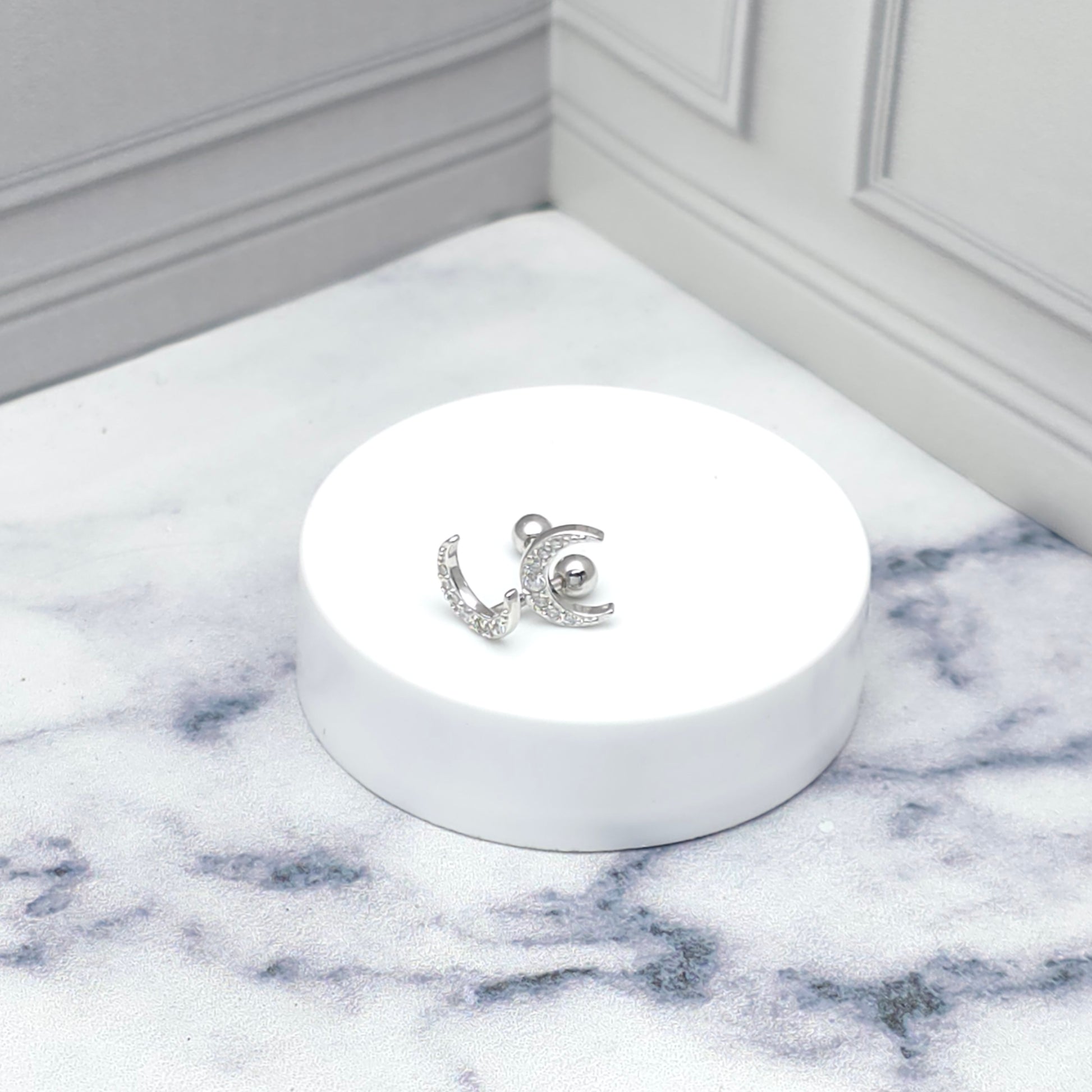 Aretes en plata 925 con diseño de luna creciente, adornados con circonias que aportan un brillo delicado y un estilo celestial único.