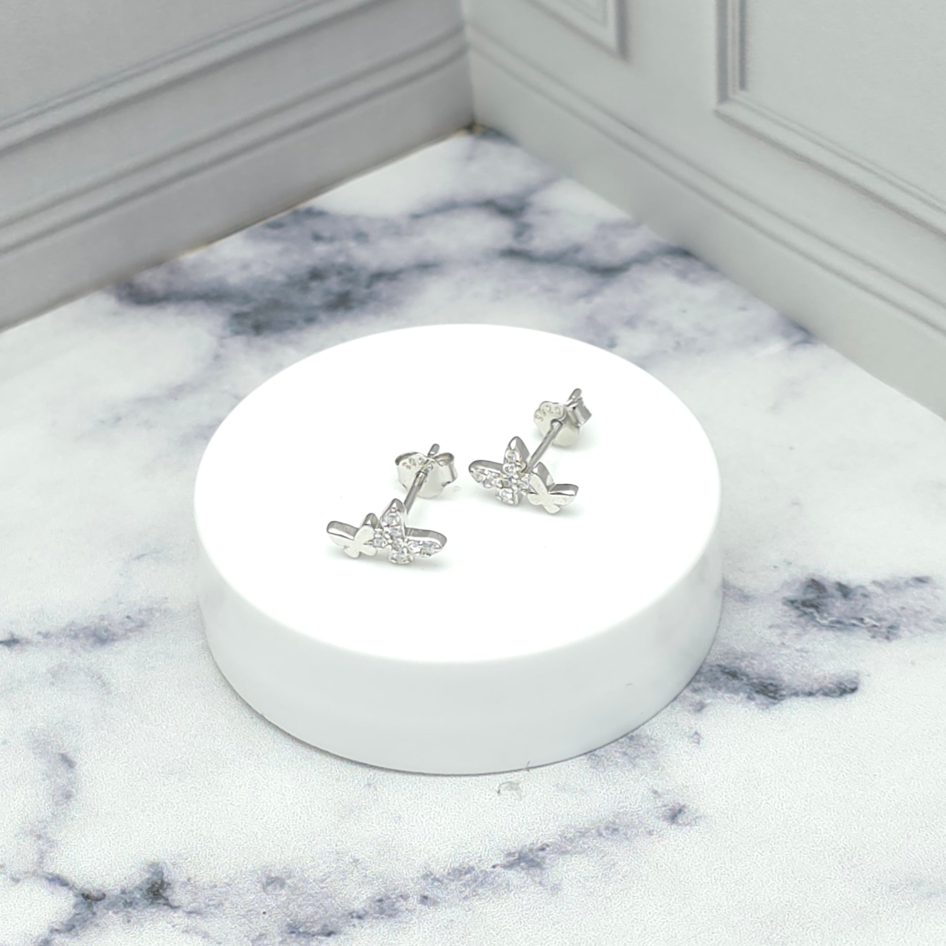 Un diseño delicado en forma de mariposa, trabajado en plata 925 y realzado con circonias que aportan un brillo elegante. Perfectos para dar un toque sutil y femenino a tu estilo.
