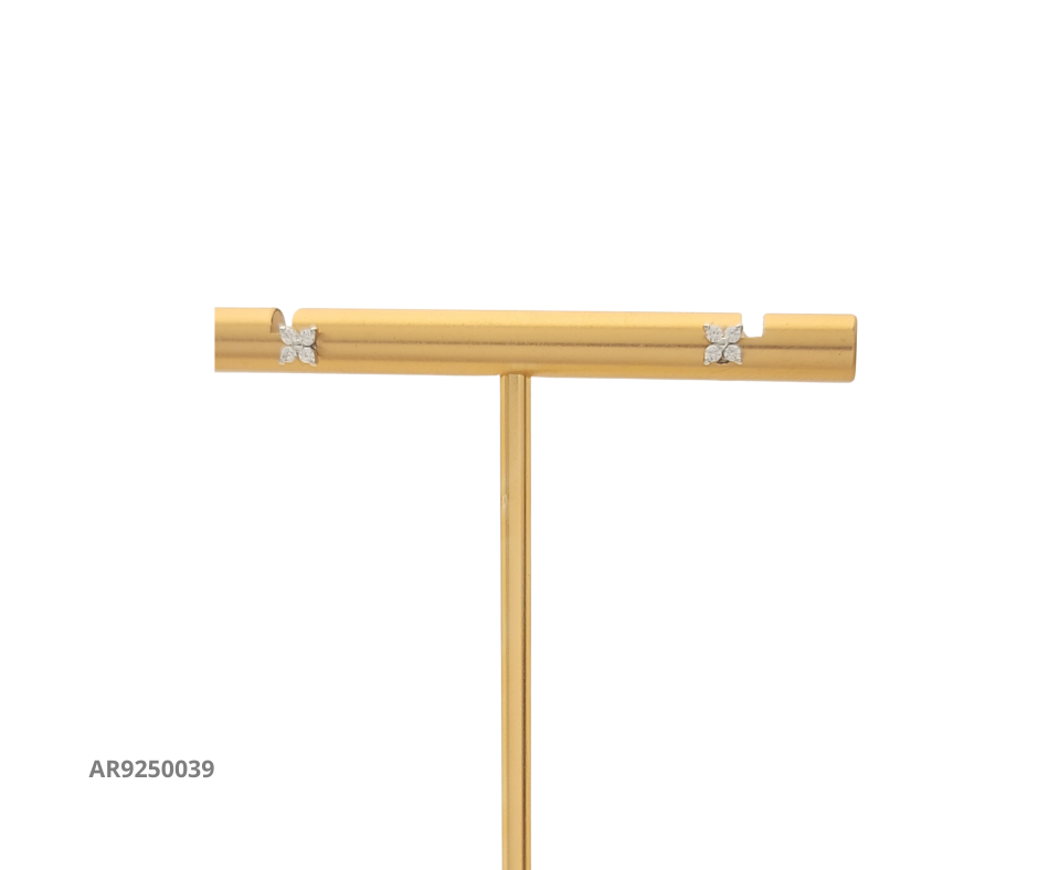Elegantes aretes pequeños con diseño geométrico de cuatro puntas, trabajados en plata 925 y adornados con circonias blancas que brindan un brillo sutil y refinado.