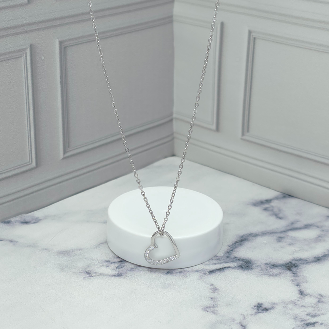 Sutil y elegante collar en plata 925 con dije de corazón abierto decorado con circonias, un diseño que representa amor, unión y brillo eterno.
