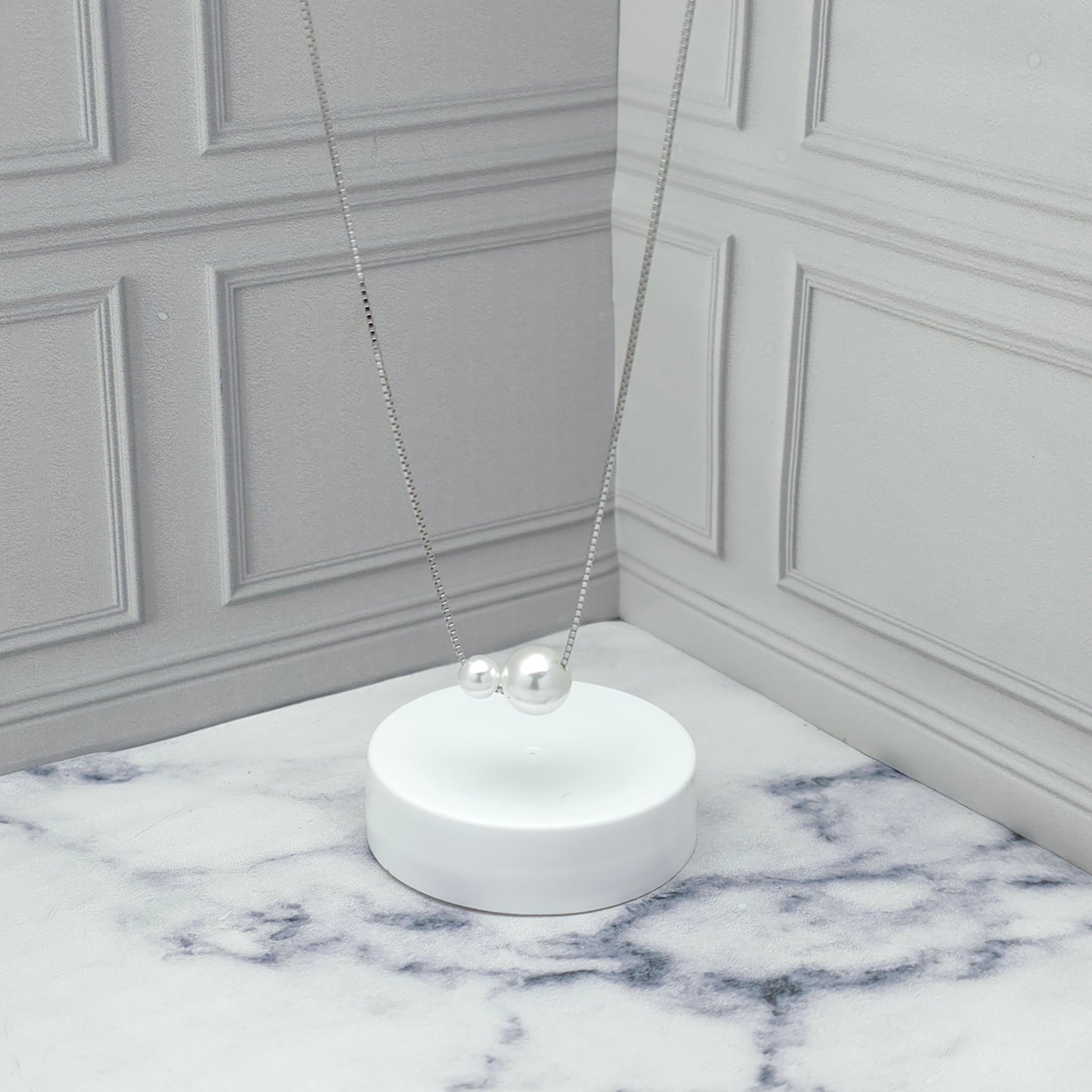 Sutil y elegante collar en plata 925 con doble perla de concha, un diseño minimalista que simboliza armonía y equilibrio con un toque contemporáneo.